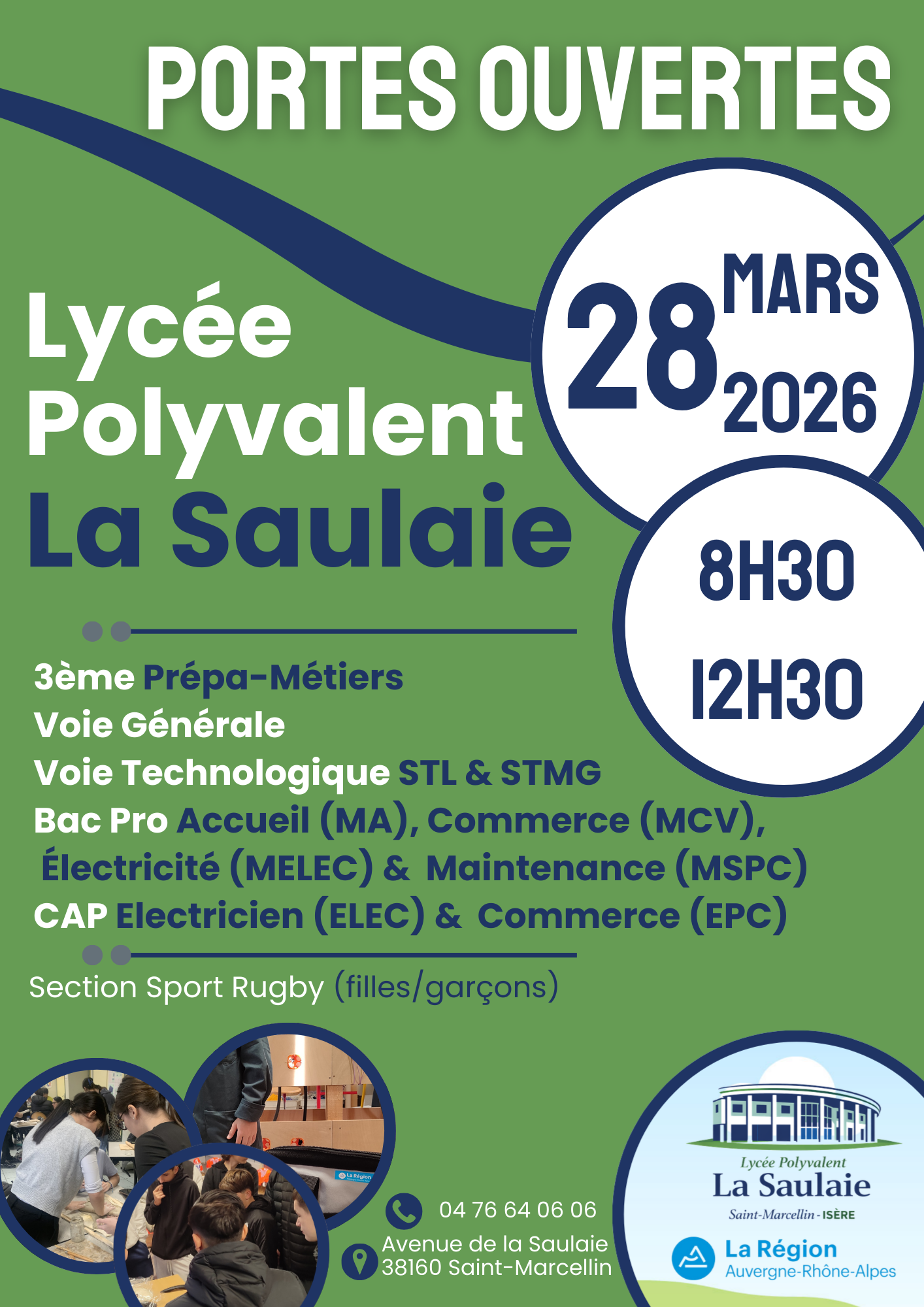 Venez nombreux.ses à la découverte de la voie générale et des filières technologiques et professionnelles du lycée la Saulaie, le samedi 28 mars 2026 de 8h30 à 12h30
