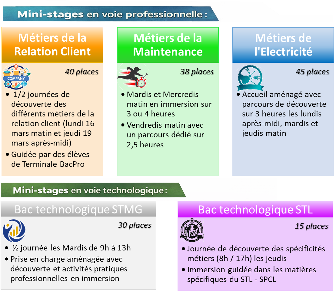 Dans le cadre de votre projet d’orientation personnel ou de la préparation à une filière d’études, dans le cadre d'une orientation ou d'une réorientation, vous pouvez réaliser un mini-stage de découverte d'un métier, ou d'une filière.